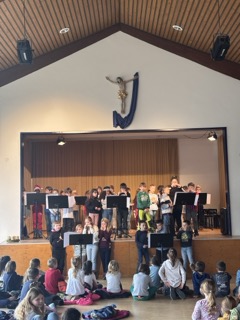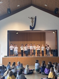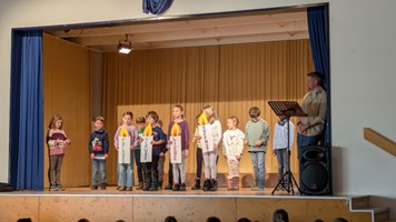 Der große Tag begann mit einem liebevoll gestalteten Gottesdienst von Herrn Pfarrer Kenner und Frau Pfarrerin Renz. Im Anschluss zogen die aufgeregten Kinder gemeinsam mit ihren Familien zur Gemeindehalle. Auf dem Weg dorthin stand bereits die ganze Schulgemeinschaft Spalier, um die neuen Erstklässler willkommen zu heißen.