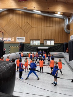 Die Kinder sammelten an den verschiedenen Stationen (Völkerball, Hindernisparcours, Basketball, Volltreffer, Schießbude) gemeinsam Punkte. Neben Schnelligkeit, Torwürfen und Geschicklichkeit zählten auch Zusammenhalt, Rücksichtnahme und Fairplay. Denn nur als Team sind wir stark!