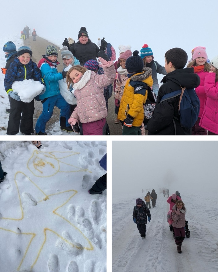 Kinder, die noch nicht Ski fahren konnten, nahmen klassenstufenweise an verschiedenen winterlichen Aktivitäten teil.