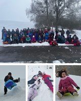 Zum Schlittenfahren ging es für die dritten und vierten Klassen an den Hang Richtung Eseltal, wo alle großen Spaß hatten.